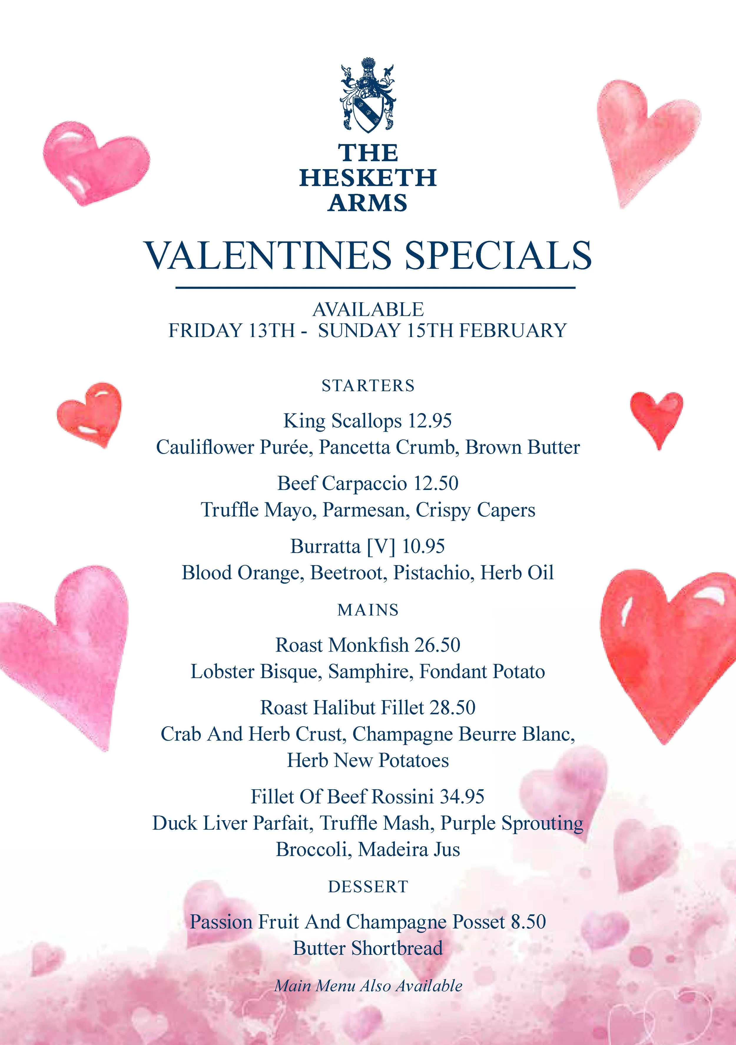 Valentine's Specials Friday, February 13, 2026 12:00 PM 12:00 Sunday, February 15, 2026 10:00 PM 22:00 Google Calendar ICS